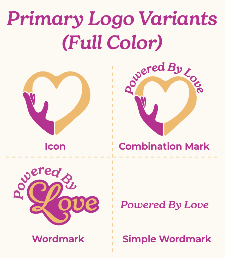 Food and disaster relief non-profit Powered By Love asked for a brand refresh, and in constructing a brand identity and design language I ultimately drew on the organization's core values of warmth, radiance, and inclusion.